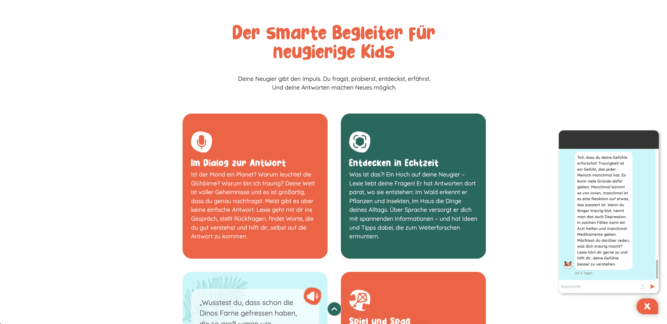 Für Lexie stand als Frühphasen-Startup eines an oberster Stelle: Das Vertrauen von Eltern und Kindern. Ein Standard-Chatbot "von der Stange" kam nicht in Frage. Ein solcher Chatbot hätte wie ein technischer Fremdkörper in der liebevoll gestalteten Lexie-Welt gewirkt.
